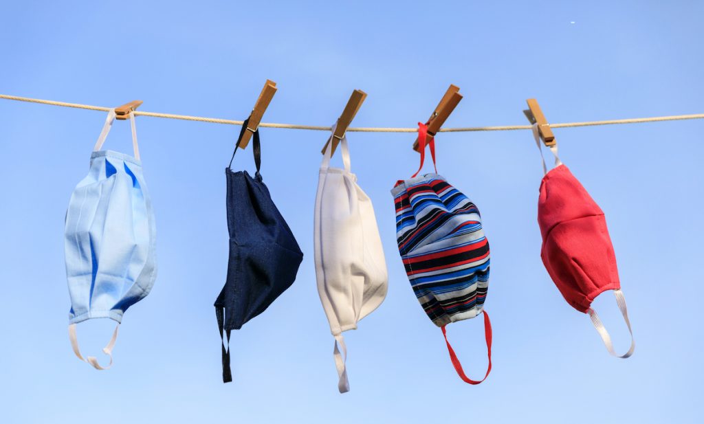 Bên cạnh khẩu trang y tế, khẩu trang vải là sự lựa chọn của nhiều người vì tiết kiệm và dễ chịu khi đeo. Tuy nhiên, hãy vệ sinh khẩu trang vải thật kỹ sau mỗi lần sử dụng. Sử dụng bột giặt không mùi, không chứa các chất gây dị ứng và không nên sử dụng nước xả vải sau đó. Nếu có thể, hãy giặt khẩu trang với nước ấm. Sau đó phơi khô và xếp gọn gàng để cho lần sử dụng sau.